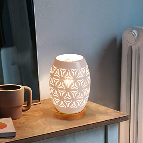 OuXean Beautiful Hollow Design E27 60W Lampada da tavolo con interruttore a cavo Quando è accesa, la luce fugge attraverso le fessure e proietta l'illuminazione del comodino