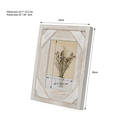 OuXean Cornici per foto in legno Cornice per foto in legno invecchiato per fattoria rustica Cornice per foto in legno 5 "x 7" (confezione da 2)