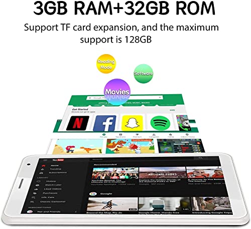 【32 GB di spazio di archiviazione ad alta capacità】 Questo tablet è dotato di 32 GB di ROM, supporta l'estensione della capacità di 128 GB, include slot micro SD, consente di scaricare un gran numero di applicazioni, come Facebook, Netflix, Skype, YouTube, Tik Tok, ecc. L'ampio spazio di archiviazione garantisce anche una velocità di funzionamento rapida e una migliore esperienza utente.