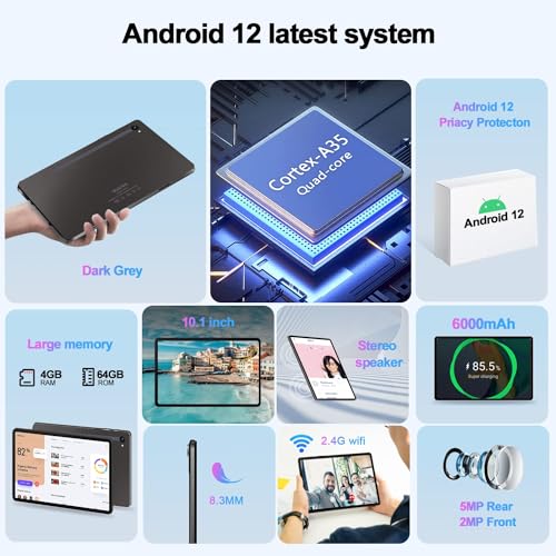 Sistema operativo ad alte prestazioni: Tablet PC è dotato dell'ultimo sistema operativo Android da 12 GB, fino a 2.4 Ghz, offrendo un'esperienza operativa più fluida per il tablet, con 4 GB di memoria in esecuzione e 64 GB di memoria di memoria, supporto Usa microSD per aumentare la memoria, il massimo supporto per la scheda SD da 128 GB, puoi avviare rapidamente le applicazioni e far funzionare i giochi e video senza intoppi.