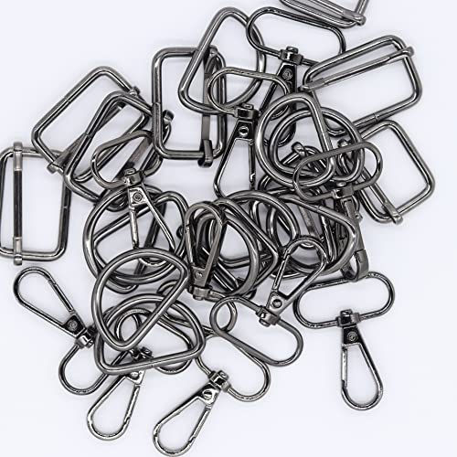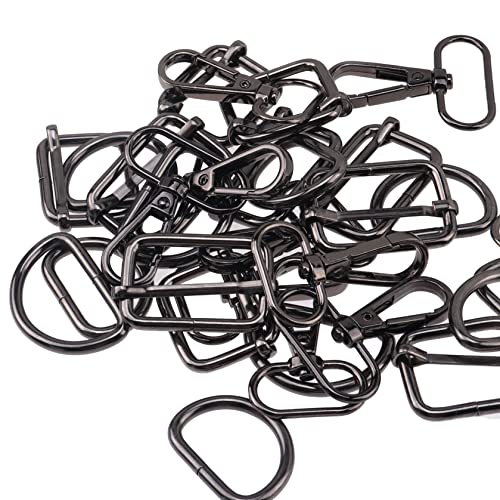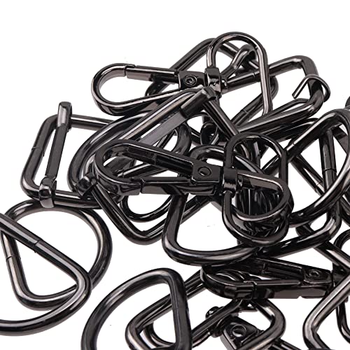 OUZRTG Confezione da 30 anelli a D in metallo, orecchini ad anello a D Tri-Glide, con moschettoni girevoli, fibbia scorrevole per borse, cucito, artigianato, artigianato (Nero, 32mm&25mm)