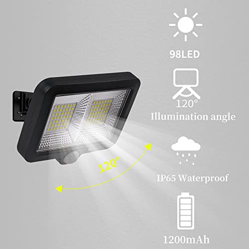 OUZRTG Faretti Solari a Led da Esterno, 98LED Luci Esterne con Sensore di Movimento, Impermeabile Wall Mount Luce Solare da Giardino con Cavo da 5 m per Patio, Giardino, Garage (2 pezzi)