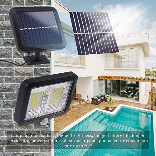 Sensore di movimento sensibile: La lampada solare da esterno con sensore di luce sensibile e rilevamento del movimento, che copre la gamma di illuminazione grandangolare di 120, può rilevare movimento fino a 2-5 m. Il sensore di luce è integrato nel pannello di ricarica solare e il sensore di movimento è integrato nella lampada da parete.