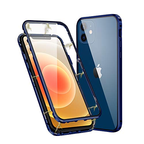 OVANN Custodia per iPhone 12 Mini 5.4-inch Anti Separato con Adsorbimento Magnetico 360 Protezione CNC Dritto Alluminio Bordo Vetro Temperato Cover Antiurto Metallo Magnete Case
