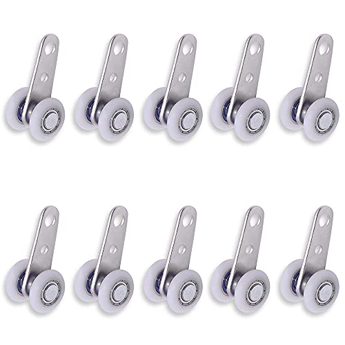 OVBBESS Confezione da 10 Pulegge con Cuscinetti in Metallo da 45 X 19 Mm con 2 Ruote in Plastica per Ante Scorrevoli 'Armadio Argento E Bianca
