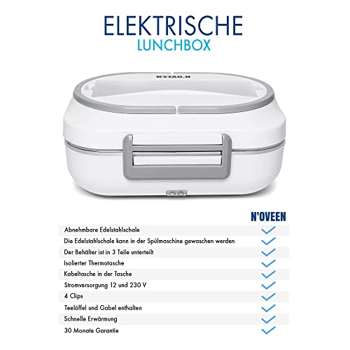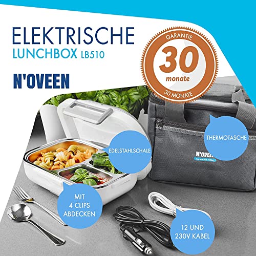 N'OVEEN Lunch Box Elettrico Scaldapiatti LB520, Piastra Termica per Box da Pranzo con Una capacità di 1 litro - 230 V + 12V (Auto) - Piastra per Alimenti per Alimenti Fino a 60 ° C per Viaggiare