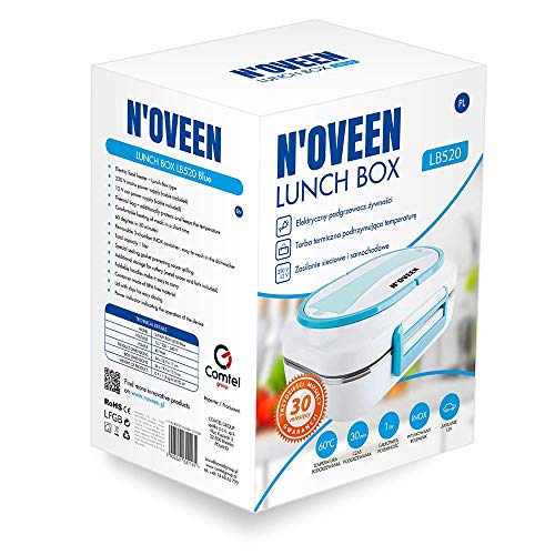 N'OVEEN Lunch Box Elettrico Scaldapiatti LB520, Piastra Termica per Box da Pranzo con Una capacità di 1 litro - 230 V + 12V (Auto) - Piastra per Alimenti per Alimenti Fino a 60 ° C per Viaggiare