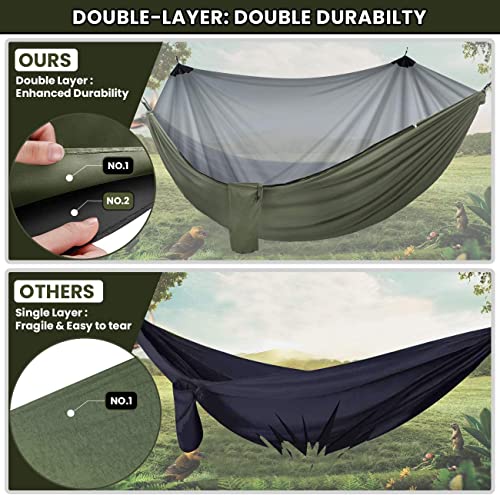 Overmont Amaca da Giardino Campeggio Doppi Strati Nylon Paracadute Amaca da Viaggio Esterno Amaca da Giardino sospesa Interni (Hammock-Net-AG-Fix)...