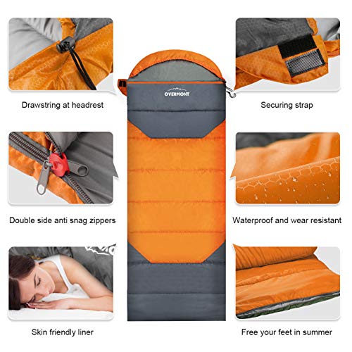 OVERMONT Sacco a Pelo Splicable Sacchi a Pelo 4 Stagione con Sacchetto di Compressione Impermeabile Leggero Portatile per Viaggio, Campeggio, Escursionismo, Adulti Bambini Arancia