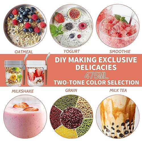 Overnight Oats Bicchieri Tazza di Muesli To Go 2-Set da Viaggio Porta Yogurt Porridge Cereali Frutta (400 ml/16 oz)
