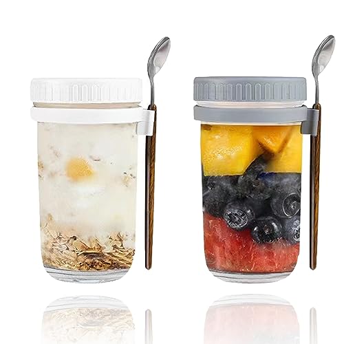 Overnight Oats Jars,Yoghurt Container Barattoli in Vetro Riutilizzabili Tazza per Cereali Portatili Porta Yogurt,Cereal Cup On the Go Portatile,per il Lavoro La Scuola L'asilo Nido (2pcs 600ml)
