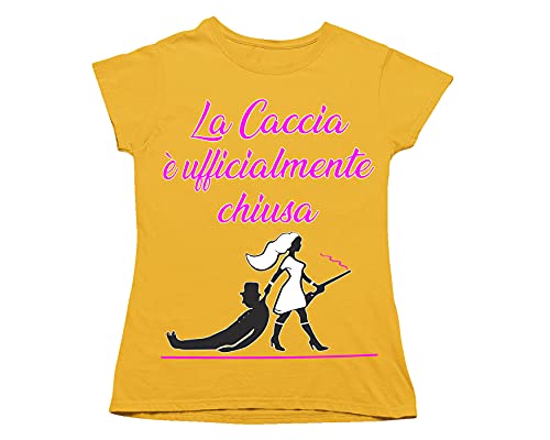 Overthetee Tshirt Addio al Nubilato La Caccia è Ufficialmente Chiusa Sposa Maglietta Addio al Nubilato Tshirt Sposa Simpatica Maglietta Matrimonio Festa Ragazza Donna Idea Regalo