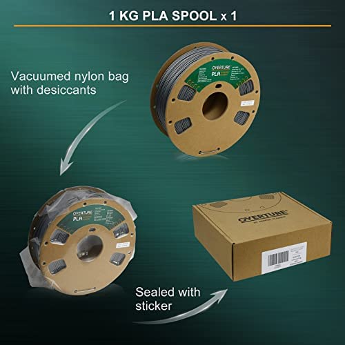 OVERTURE Filamento in PLA da 1,75 mm, bobina in PLA da 1 kg (1 kg), precisione dimensionale +/- 0,03 mm, adatta alla maggior parte delle stampanti FDM (grigio spaziale)