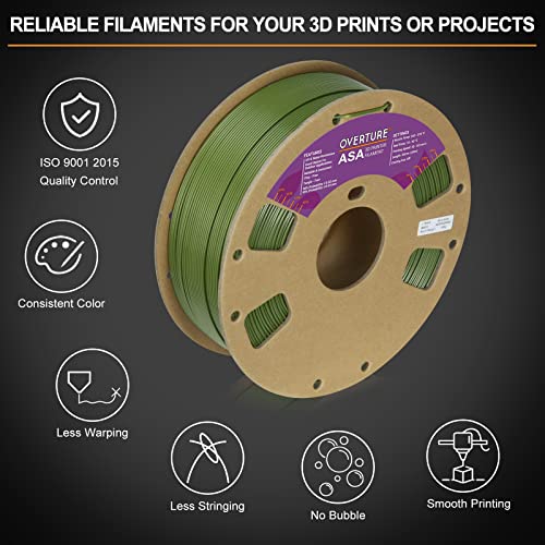 OVERTURE Filamento ASA 1,75 mm Premium Anti-UV 3D Filament, bobina da 1 kg (1 kg), precisione dimensionale +/- 0,03 mm, adatta alla maggior parte delle stampanti FDM (verde oliva)