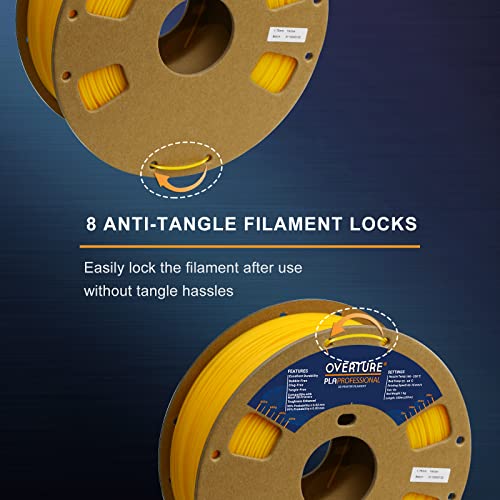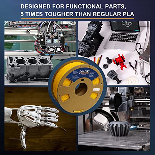 OVERTURE PLA Plus (PLA+) Filamento PLA 1.75mm, Toughness Enhanced PLA Roll, Professionale PLA Tenacia, 1kg Filamento(2.2lbs), Precisione Dimensionale 99% Probabilità +/- 0.03 mm (Giallo)