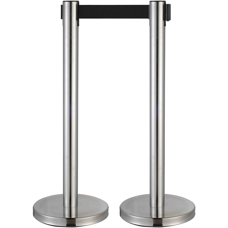 Palo avvolgitore - Lotto di 2 - utilizzare questi pali guida avvolgitore cromati per delimitare le code e controllare la folla. Ogni palo è dotato di un nastro retrattile nero lungo 2 metri e di 3 fessure di arrivo per fissare le cinture di altri pali avvolgitore. Questi paletti vi permetteranno di segnalare i vostri spazi e garantire la sicurezza dei vostri clienti o ospiti. I pali guida con nastro dispongono di una base di 6 kg riempita di cemento e un diametro di 32 cm che ne garantisce la stabilità. Dimensioni Altezza del palo avvolgitore 91 cm - Diametro della base 32 cm - Lunghezza del nastro: 2 m - Larghezza della cintura 5 cm Materiale Struttura in acciaio - Fessure e connettori in PEHD - Nastro in poliestere Colore Palo guida e base cromati - Fessure e connettori neri - Nastro nero Utilizzo professionale Utilizzo professionale intensivo + Peso Peso della base 6 kg - Peso di un solo palo 2,2 kg I vantaggi del prodotto Facile da montare (meno di 3 minuti) - Ampia base in