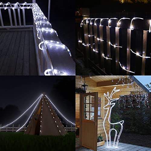 Ovker 100LEDs Catena Luminosa led Solare Esterno Tubo Luce,10m Luci Stringa di Natale Esterno Solare,Luce Corda PVC Impermeabile Luci Decorative per All'aperto,Giardini,Patio,Case(bianco freddo)