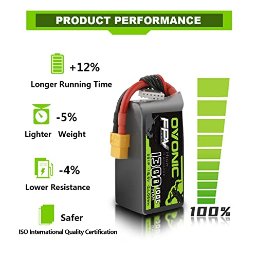 【Prodotto】: OVONIC Lipo Batteria 5S 1300mAh 100C 18.5V FPV Lipo con connettore XT60 per RC Heli RC Aereo FPV Quadcopter Racing RC Quadcopter Drone DIY Hobby
