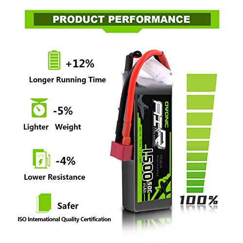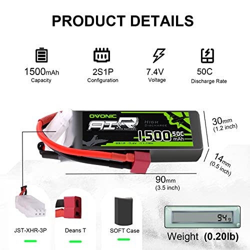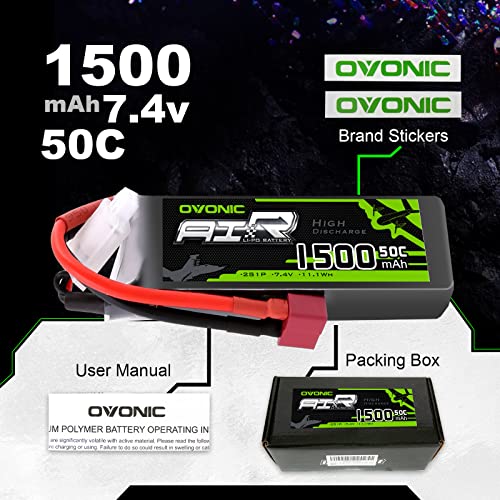 OVONIC Batteria Lipo 2s 7.4V 50C 1500mAh con connettore Deans T per RC Aereo Elicottero Auto Camion Truggy RC Hobby FAI DA TE