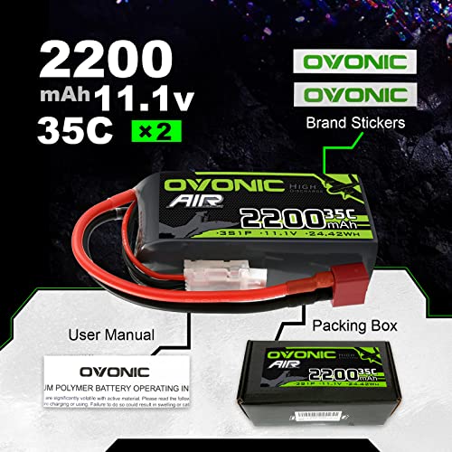 OVONIC Batteria Lipo 3s 35C 2200mAh 11.1V Batteria Short Pack con Deans per RC Heli Aereo Quadcopter RC Auto Multi-Motore Elicottero Fai da Te Hobby (2 pezzi)