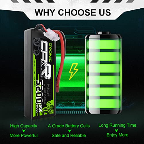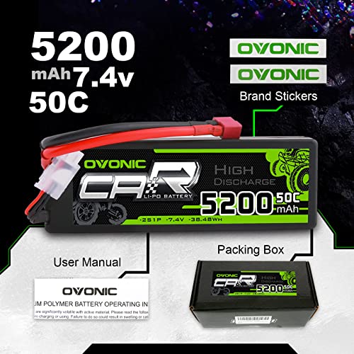 OVONIC Batteria Lipo 2s 5200mAh 50C 7.4V Batteria Lipo con Deans T Plug per Scala 1/8 e 1/10 RC Auto Camion Elicottero Aereo (2 pezzi)