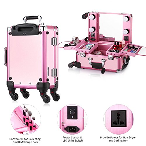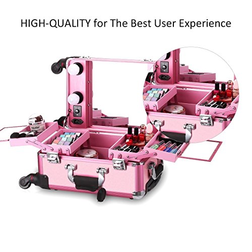 Ovonni Beauty Case da viaggio Vanity Caso Trucco Caso Trucco con Specchio a LED 4 Ruote estraibili Professionale professionale per parrucchiere Studio multifunzioni Rosa
