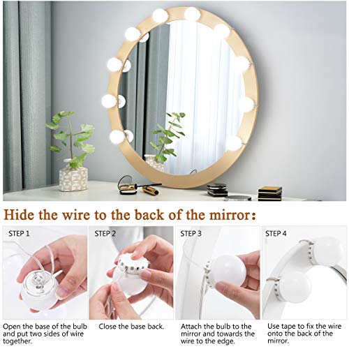 FLESSIBILE LIGHT STRING LENGTH: Kit luce 17.5Ft / 5M in tutta la lunghezza adatto per la maggior parte degli specchietti, la lunghezza del filo può essere regolata per le tue esigenze, design dei cavi nascosti, filo di ricambio può essere nascosto sotto le luci per mantenere la marea dello specchio e pulito