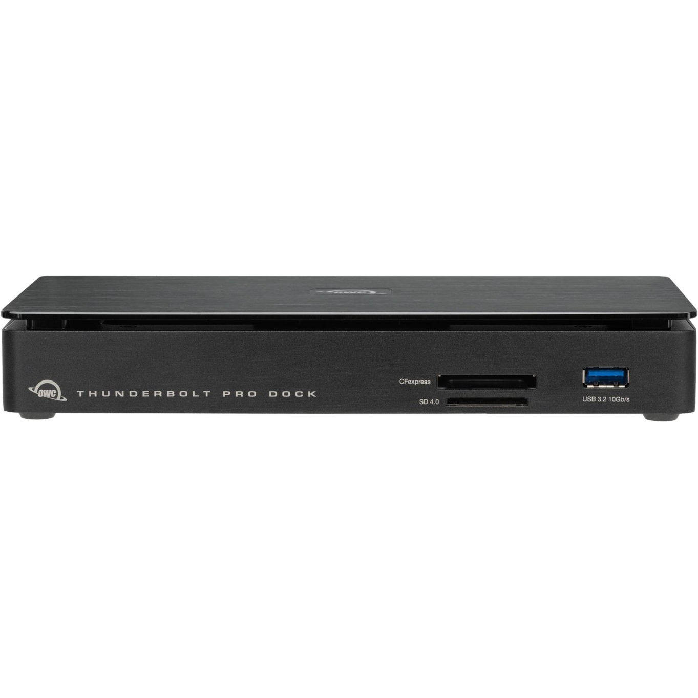 OWC Thunderbolt Pro Dock offre una porta Ethernet da 10 Gb/s, lettori di schede CFexpress e SD, due porte Thunderbolt, una porta USB-C e tre porte USB-A. È possibile collegare un monitor fino a 8K o due monitor con risoluzione fino a 4K. È possibile collegare fino a cinque dispositivi Thunderbolt e con una potenza di ricarica di 85 W, il notebook è sempre carico e pronto per l''uso.