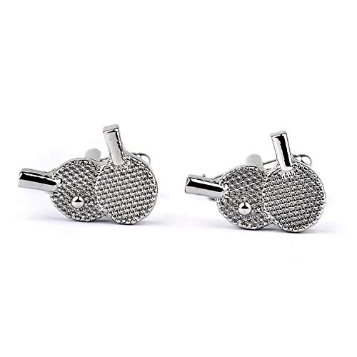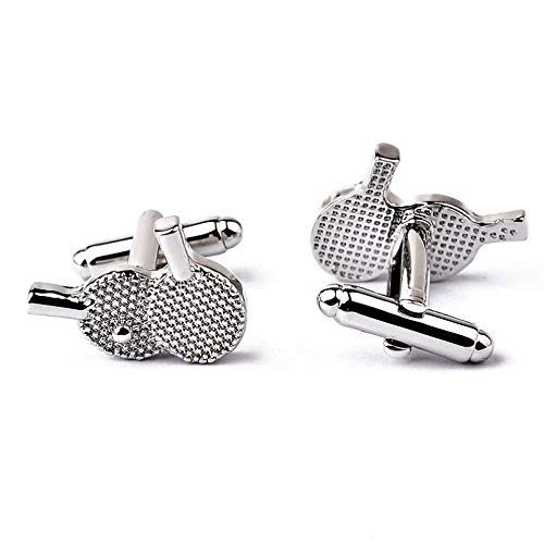 Owenqian Gemelli Camicia Uomo, Gemelli da Tavolo da Ping Pong Gemelli con Racchetta d'Argento creativi Gemelli Casual da Uomo