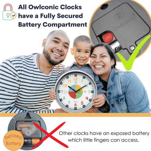OWLCONIC Orologio da insegnamento per bambini con orologio analogico per camera dei bambini, per camera da letto dei bambini, decorazione per la scuola scolastica, orologio educativo per bambini che imparano a dire l'ora