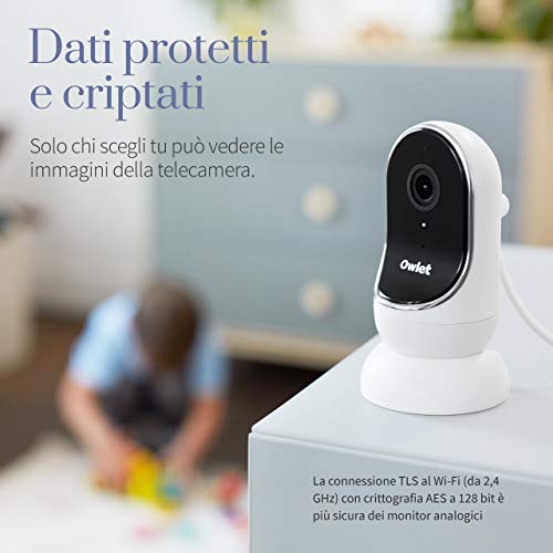 La telecamera di Owlet è il baby monitor Wi-Fi intelligente che trasmette in tutta sicurezza immagini HD del bambino con la visione preferita e nitida da qualsiasi angolazione. Niente più restrizioni dettate dai dispositivi di controllo portatili e possibilità di controllare il bambino in qualsiasi momento.