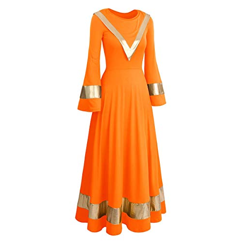 OwlFay Donna Abito Liturgico Culto Manica Lunga Maxi Vestito Inverno Swing Danza Cerimonia Balletto Ginnastica Classico Combinazione Costume Arancia XS
