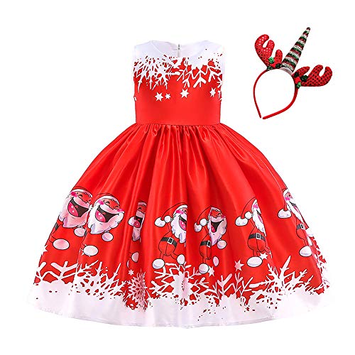 OwlFay Ragazze Vestito Natale Santa Abito con Elk Fascia Senza Maniche Xmas Festa Halloween Fancy Dress up Abiti per Bambine Rosso A 7-8 Anni