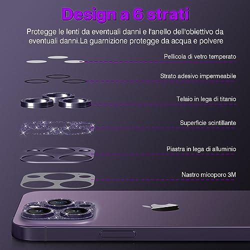 【Design scintillante】 A differenza di altre protezioni per iPhone 4 glitterate sul mercato, la protezione della fotocamera è rivestita di glitter sulla parte superiore e inferiore, rendendola ancora più scintillante e attraente. I brillantini non scompaiono con l'uso quotidiano ed è dotato di una copertura completa resistente a graffi/acqua/gocce per proteggere l'obiettivo della fotocamera dalla vita quotidiana.