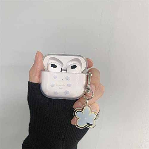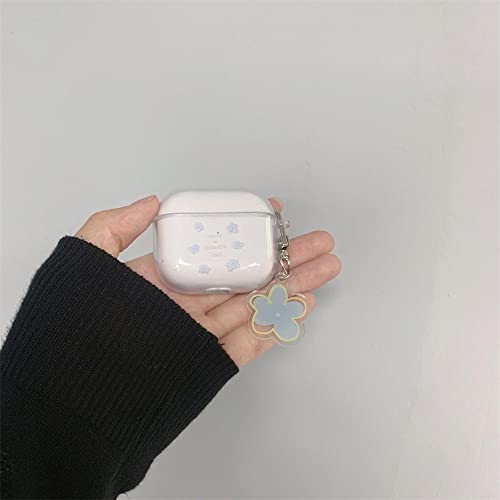 Ownest Compatibile con AirPods 3 Custodia con Ragazze Carino Trasparente Fiori Floreale Disegno Liscio Custodia Morbida in TPU Cover per Airpods 3 -Blu Fiori