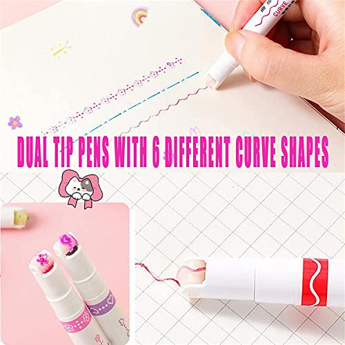 OWSEN Smilevol Linear Color Pens - Smilevol Dual Tip Pens with 6 Different Curve Shapes,Smilevol Pens,Smilevol Roller Pens,Childen-Dual Tip Pens,Colored Writing Markers, for Writing, Drawing