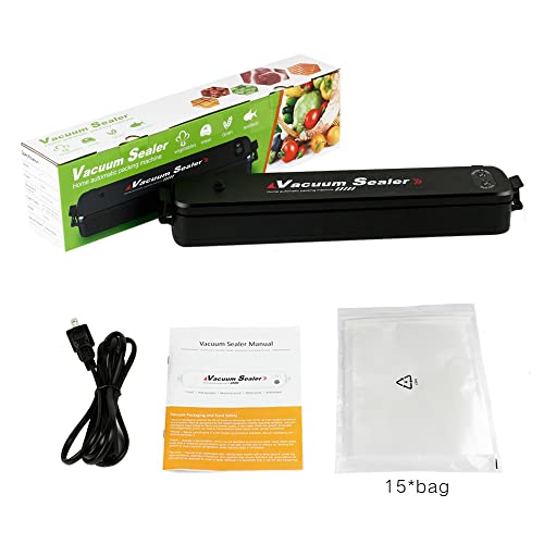 OWYELO Macchina Sottovuoto per Alimenti Automatica, Sigillatore a Vuoto Cibi Freschi Sia Secchi Che Umidi con 15 Sacchitti, Vacuum Sealer Professionale Nero