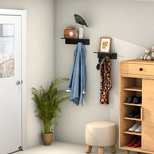 Design 2 in 1: il gancio superiore per appendiabiti combina il ripiano con il gancio, che non solo può posizionare oggetti come foto, libri, piante verdi, ma può anche appendere vestiti, borse, ombrelli, chiavi e altri oggetti. Dimensioni del prodotto: 30 x 11 x 8,5 cm, piccolo spazio, la mensola ha 4 ganci, la distanza tra i due piccoli ganci è di 7 cm, c'è abbastanza spazio per appendere il cappotto spesso.