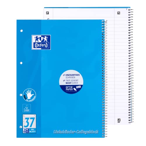 Oxford 100050404 - Block notes per mancini A4+, a righe con margine a sinistra e a destra, 80 fogli, carta ottica 90 g/m², confezione da 10 pezzi, colore: Blu
