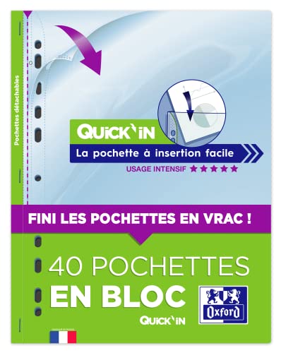 Oxford Blocco di 40 buste in plastica A4 perforate Quick'in Liscio, spessore 9/100°, incolore