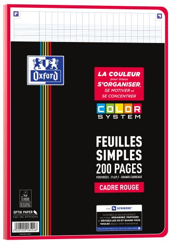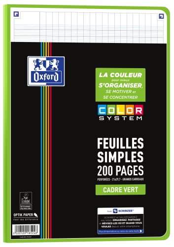 Oxford Color System, fogli singoli perforati A4, 200 pagine, piastrelle Seyès grandi, 5 colori di cornice, cartoncini assortiti 400156837