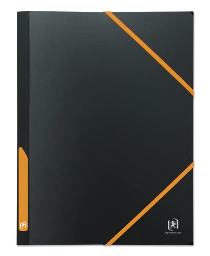 OXFORD Pochette Plastique 3 Rabats For Students A4 avec Elastique Dos 30mm Couverture Polypro Bicolore Noir/Orange