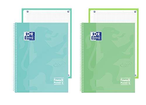 Oxford Maxi 2 Quaderni Spiralati Favorit P@stel, quadretti 5mm Celeste e Smeraldo Pastello
