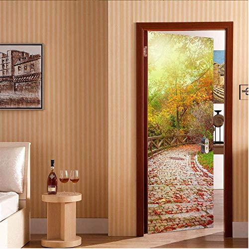 Oxiang Adesivi per Porte Interne 3D Parco Percorso Adesivo Murale Decorazione Domestica Adesivo da Parete Adesivo d'Arte Camera da Letto Soggiorno Poster Rimovibile Adesivi per Porte -77x200cm