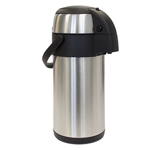 Oxid7 ® Pump Brocca Thermos Caraffa Termica Airpot - doppelwandiger Dispenser bevande - Mantiene il vin brulé e altre bevande fino a 24 ore di caldo o freddo - 1,9, 3 o 5 L, Acciaio INOX, argento, 5 litri