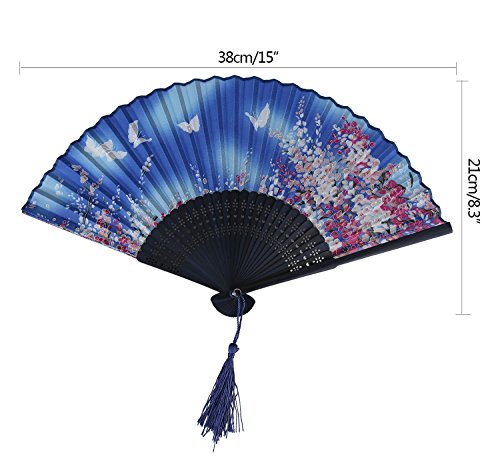 OXOQO Farfalla Bianca Modello di fiori rosa Pizzo di bamboo Handheld pieghevole Fan per le ragazze donne