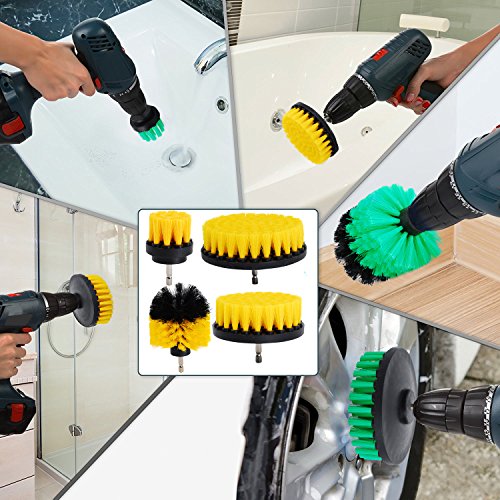 1. Funziona alla grande varietà di applicazione - per pulizia Boat/marine scafi, pneumatici, boiacca/piastrelle, vasche/docce, schierandosi, linoleum, moquette, tappezzeria, pavimento, vetro e molte altre applicazioni. Utilizzare questo mezzo collegamento trapano rigidità setola pennello può velocità variabile trapano per il massimo controllo. Questo kit di pulizia spazzola scrubber contiene media rigidità Brush, 5,1 cm, 7,6 cm, 10,2 cm, si possono usare in uso diverso, piccole dimensioni spazzola per aree difficili da raggiungere.