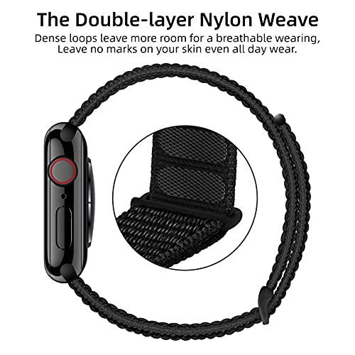 OXWALLEN Solo Loop Adjustable Braided Strap compatibile con cinturino Apple Watch 7 45mm 42mm 44mm,Nylon Elastico Regolabile Sportivo Ricambio Cinturino per iWatch SE & Series 7 6 5 4 3, Black