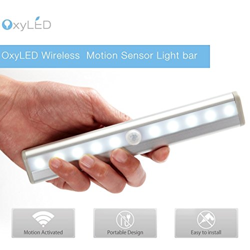 OXYLED T-02 4069023 Portatile DIY Stick-on Anywhere, Ideale per Armadio da Parete Sous-Bar, Gabinetto Lampada LED 10 LED Automatico con sensore di Movimento, Senza Fili, sensore Magnetico Freddo