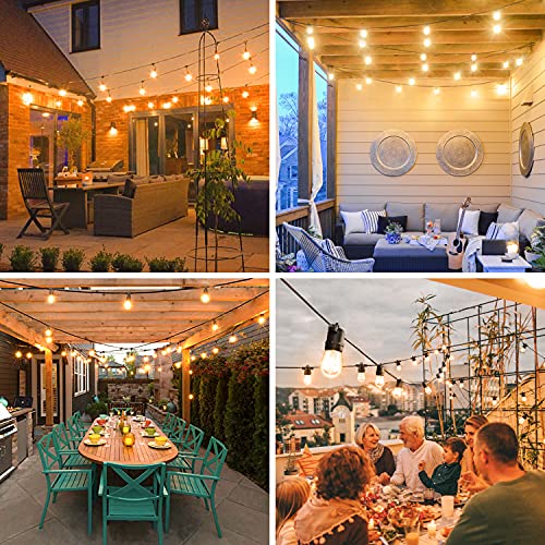 【Favolose lucine collegabili】: dotata di 38 pezzi di presa e 40 pezzi di lampadine a LED da 1 W (inclusi 2 backup, distanza tra le lampade di 39,4 pollici), questa luce a catena lunga 39 metri può essere collegata fino a 5 fili da un capo all'altro ciò che ti affascina . Famiglia e ospiti con splendore romantico.